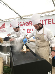 Le vendredi 6 décembre 2019, a eu lieu la Foire Saint-Nicolas dans le centre ville d’Evreux. Dans le cadre de l’exposition agricole sur la parvis de la Cathédrale, les Jeunes Agriculteurs de l’Eure ont invités Côté Restauration a cuisiner leurs produits afin d’offrir aux passants une dégustation 100% normande.
