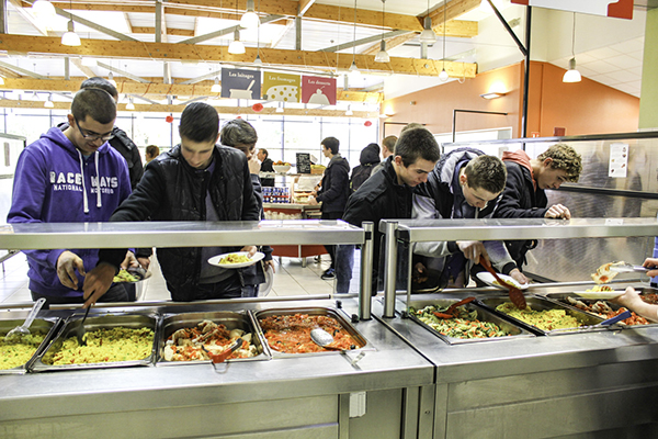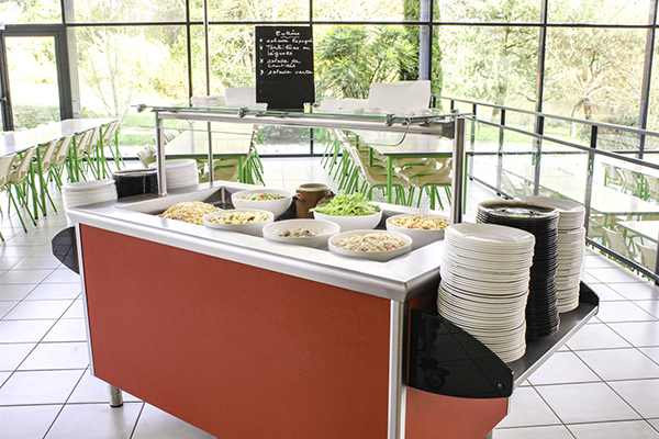 — En salle, le Zéro gaspillage se caractérise par une suppression des lignes de self traditionnelles au profit de pôles de distribution disposés dans la salle de restaurant et la suppression d’une assiette (même assiette pour l’entrée et le plat chaud).