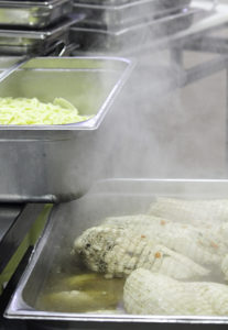 Depuis septembre 2019, nos convives de Normandie ont la possibilité de manger des repas faits maison élaborés sans aucun contenant plastique. Par exemple, notre cuisine centrale ne pratique pas la cuisson sous vide dans des poches en plastiques. En effet, nous cuisinons nos viandes dans une sauteuse ou au four dans des plats en inox 100% réutilisables. Côté Restauration anticipe donc la loi EGalim qui interdit, entre autres, l’utilisation du plastique dans la production des repas scolaires à compter de 2025.